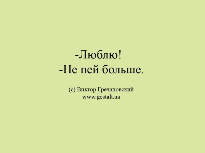 -Люблю!-Не пей больше.