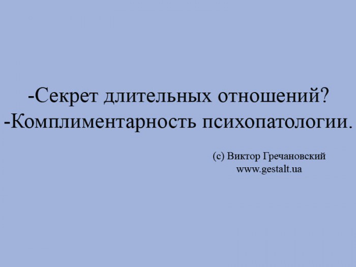 -Секрет длительных отношений? -Комплиментарность психопатологии.