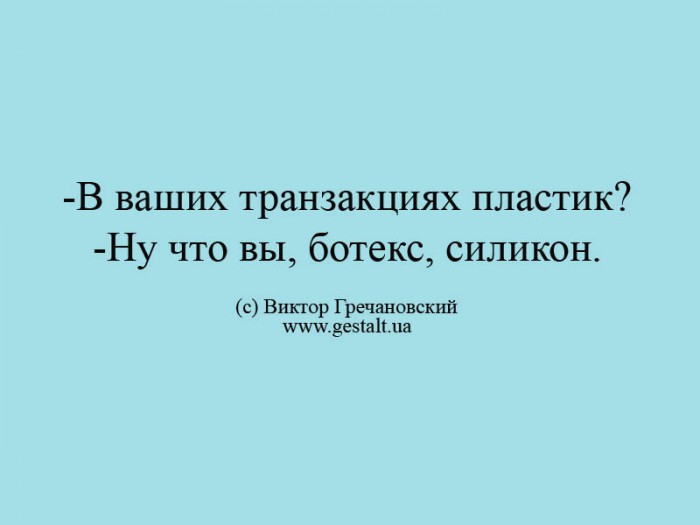 -В ваших транзакциях пластик? -Ну что вы, ботекс, силикон.