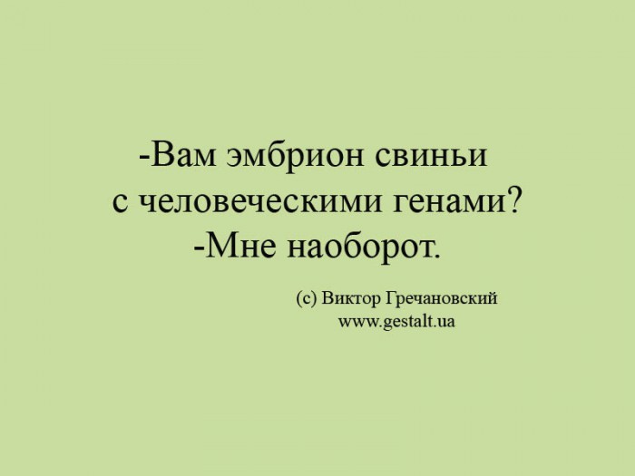 -Вам эмбрион свиньи с человеческими генами? -Мне наоборот, пожалуйста.(с) Виктор Гречановский