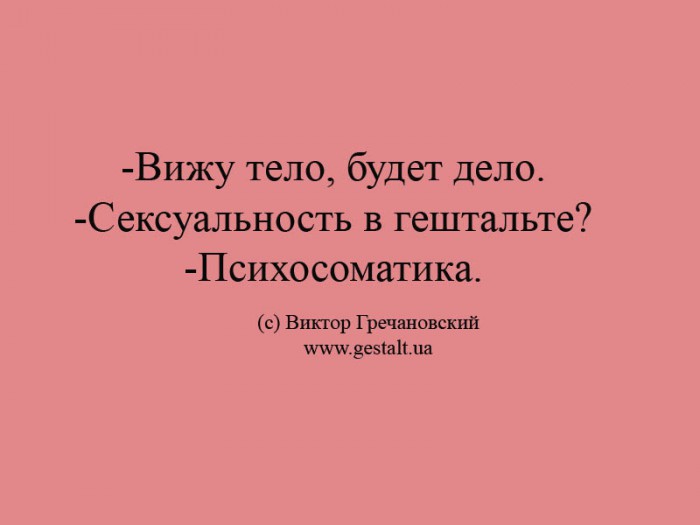 -Вижу тело, будет дело. -Сексуальность в гештальте? -Психосоматика.