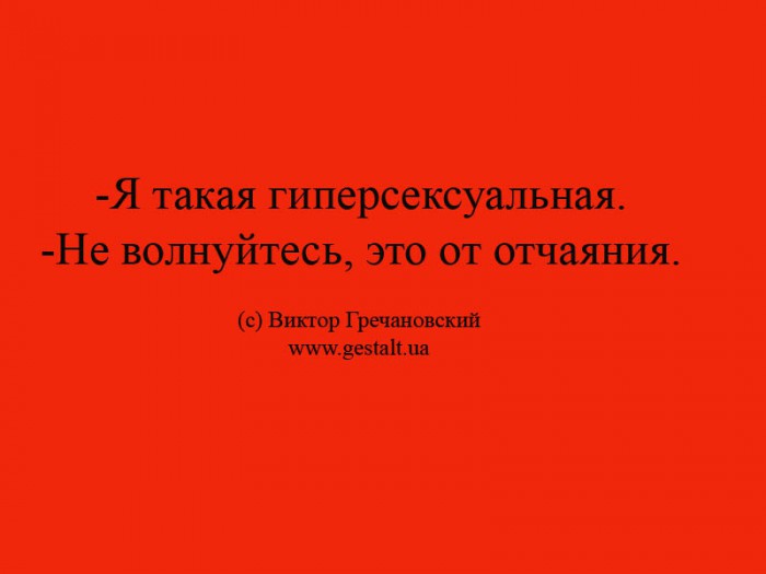 -Я такая гиперсексуальная. -Не волнуйтесь, это от отчаяния.