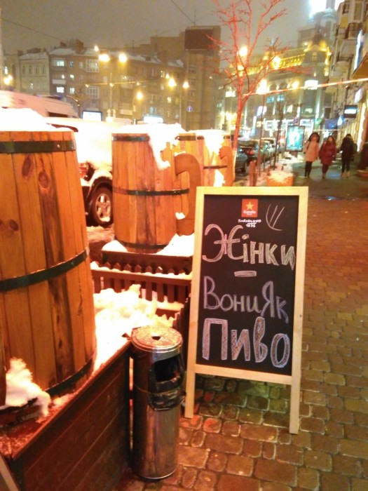 Ну, логически рассуждая, если что-то было-бы «не так», с точки зрения этики или морали или маркетинга или PR, то на это, наверное, кто-то, кроме меня, обратил бы внимание, ведь это в центре Киева, где за день проходит-проезжает несколько тысяч или десятков тысяч человек, Мужчин и Женщин. Значит с точки зрения обыденного восприятия современников «всё так» и это работает.