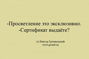 -Просветление это эксклюзивно. -Сертификат выдаёте?