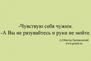 -Чувствую себя чужим. -А Вы не разувайтесь и руки не мойте.
